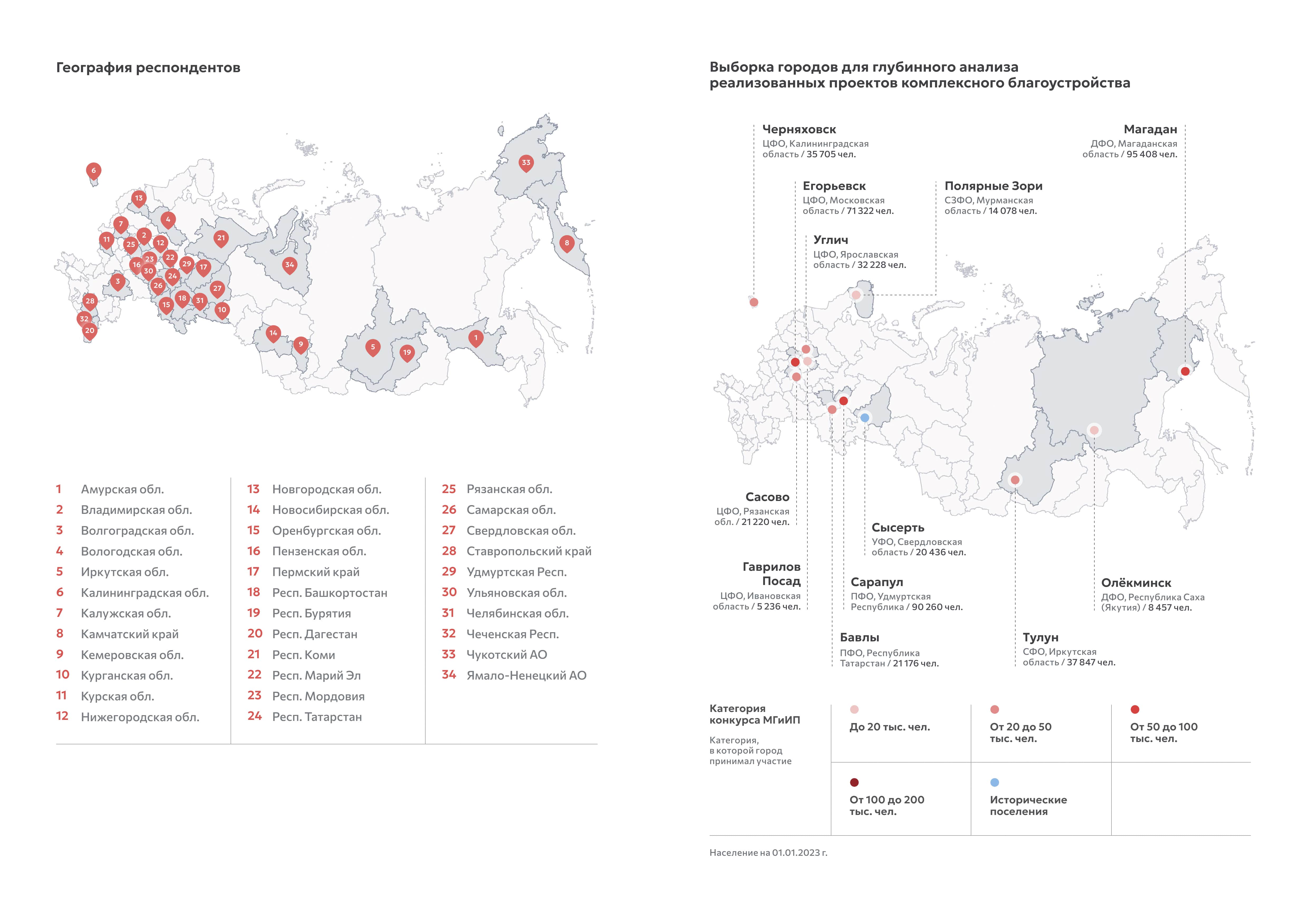 Вторым этапом стала работа над экспертно-аналитическим докладом. Мы резюмировали всё сказанное на экспертных сессиях, провели опросы муниципальных служащих, проанализировали статистику Минстроя, изучили существующие пособия по развитию городской среды — более 50 уже разработанных методических материалов и докладов. Важнейшим разделом доклада стал глубинный анализ 12 городов по всей стране — от Дальнего Востока до Калининградской области. Это Бавлы, Гаврилов Посад, Егорьевск, Магадан, Олёкминск, Полярные Зори, Сарапул, Сасово, Сысерть, Тулун, Углич и Черняховск. Нам было важно разобрать конкретные примеры и посмотреть, как устроены те или иные модели успеха, причем не в Москве или Казани, а в менее очевидных местах.