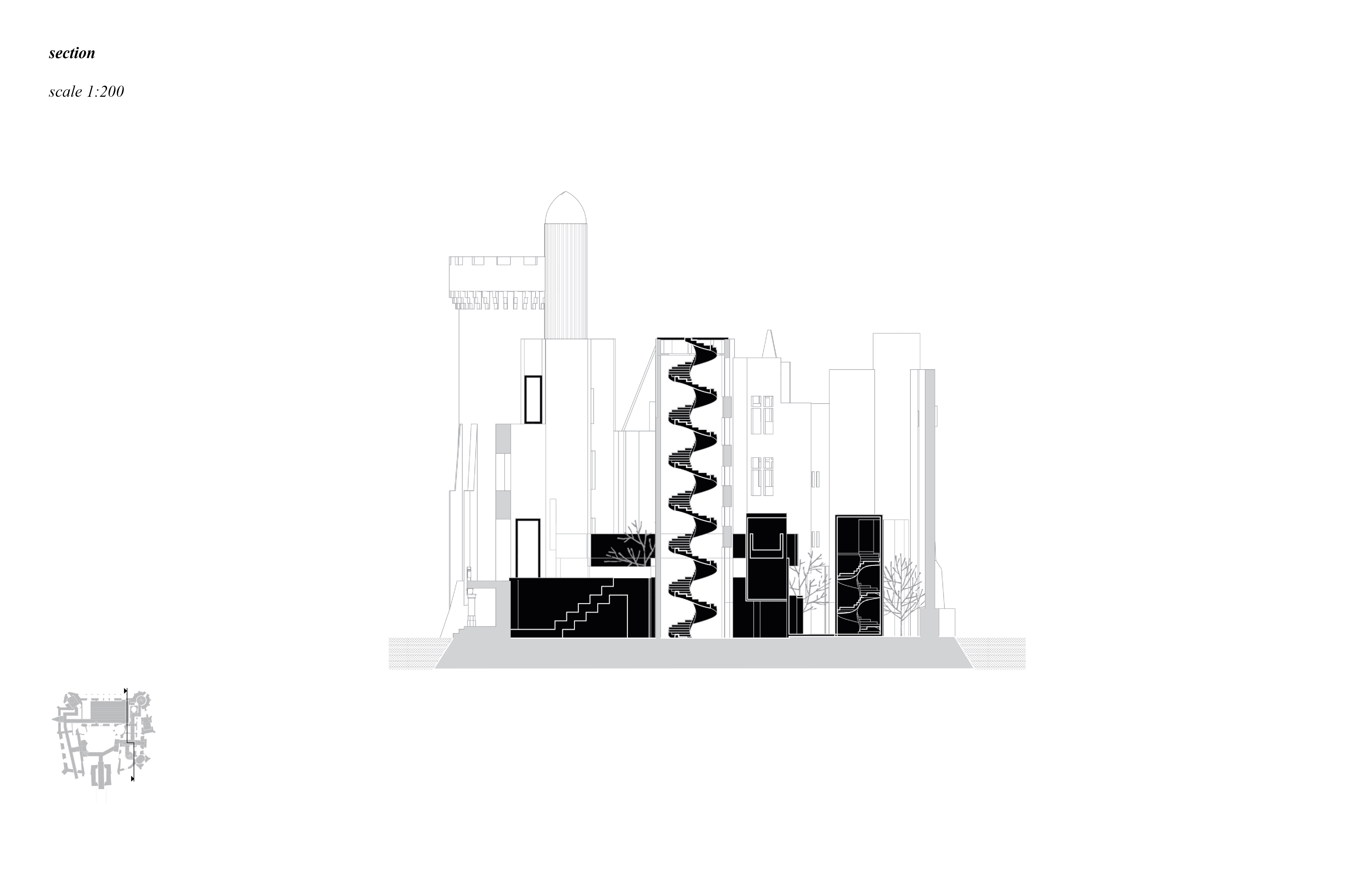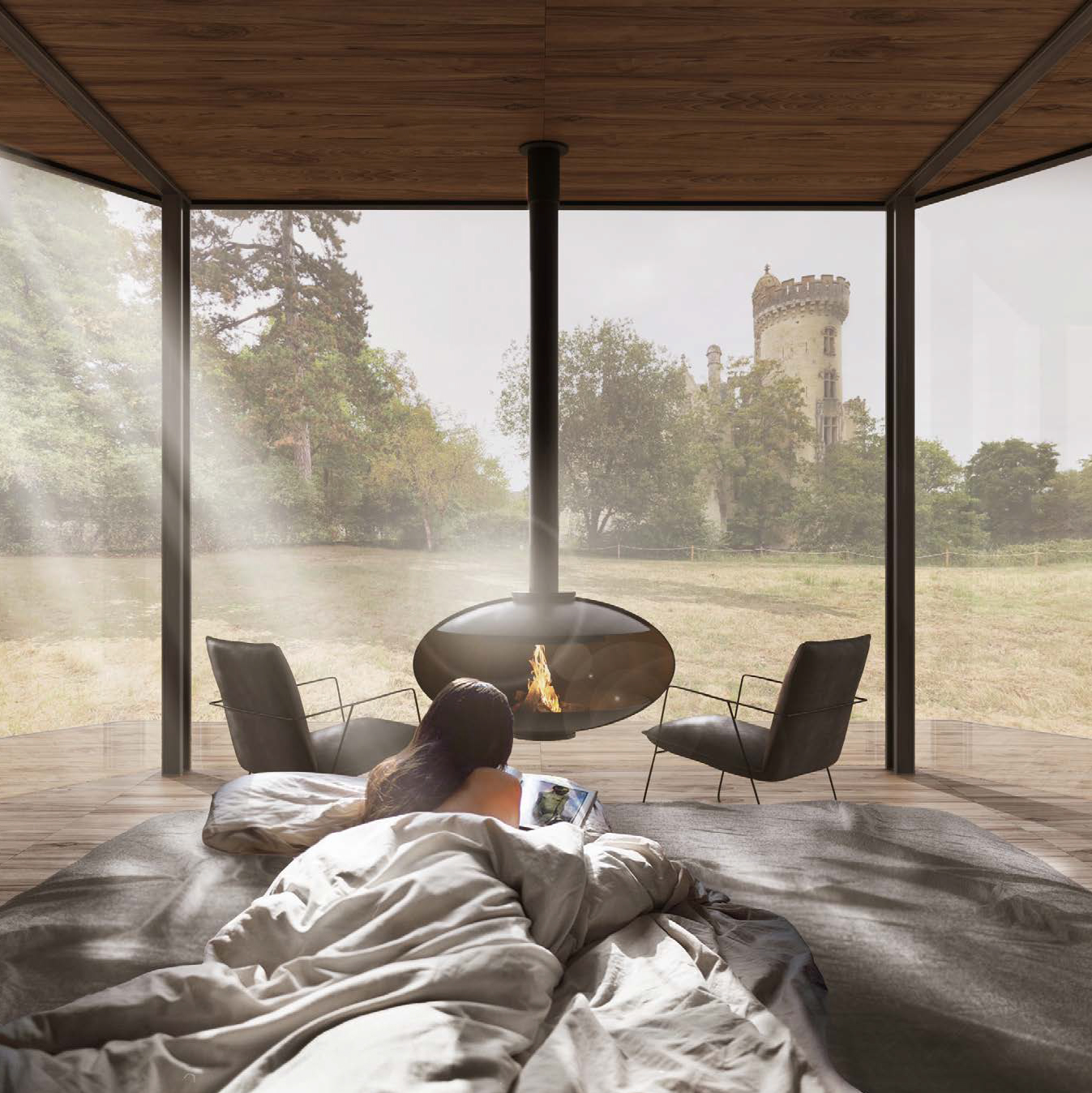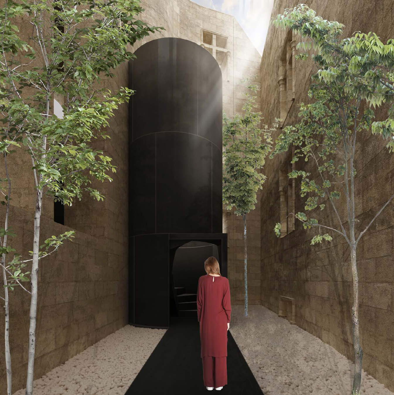Проект предусматривал сохранение замка в его текущем состоянии, создание ивент-площадки внутри его стен и небольшой зоны глэмпинга на прилегающей территории для размещения гостей мероприятий. Архитектурная концепция строилась на контрасте фактуры каменных стен замка и черного цвета привносимых функциональных элементов. Проект консорциума завоевал золото конкурса.