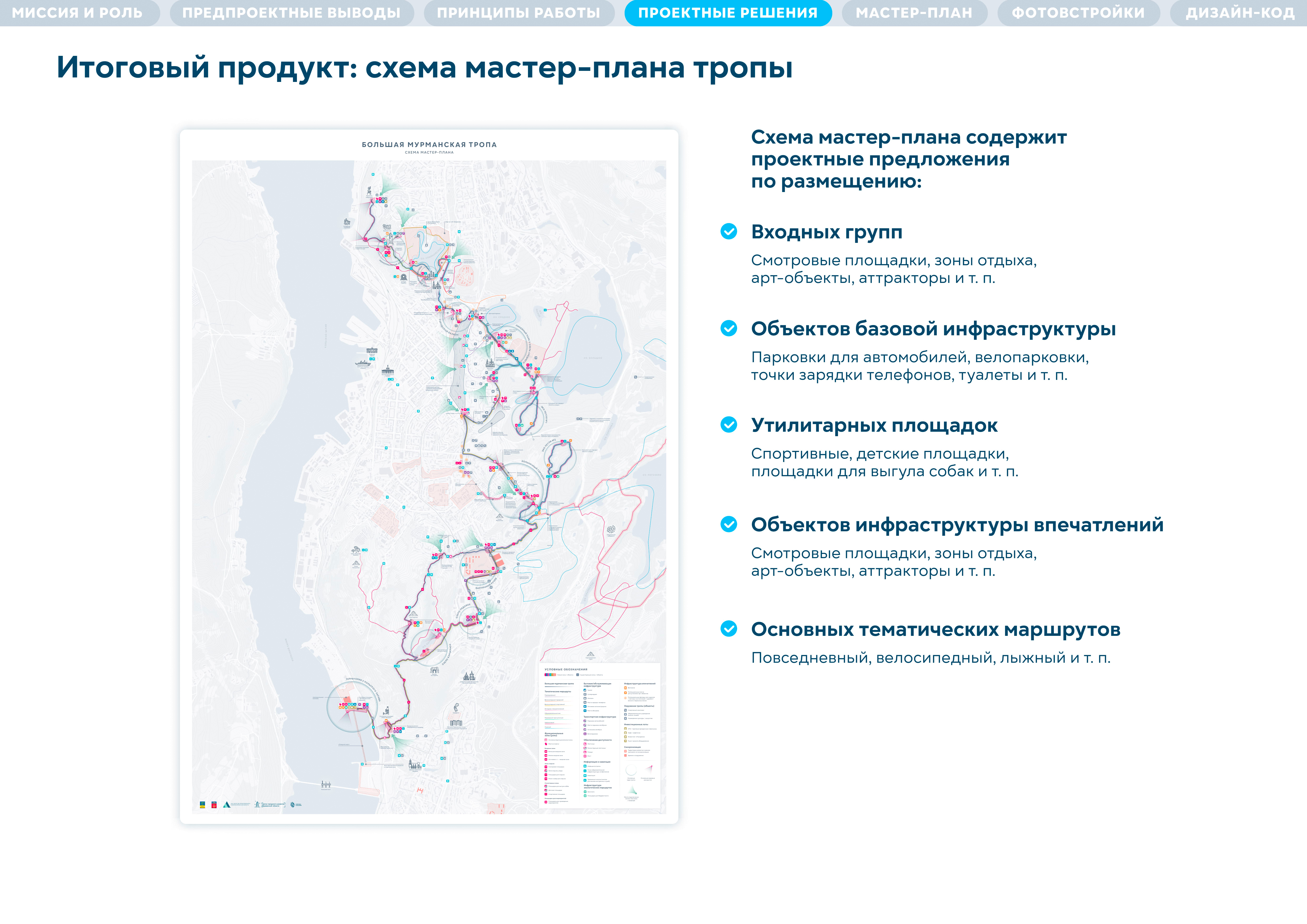 - слой самой тропы — входные группы, тематическая навигация — в зависимости от участка: история, подвиг города, природа, геология, море;