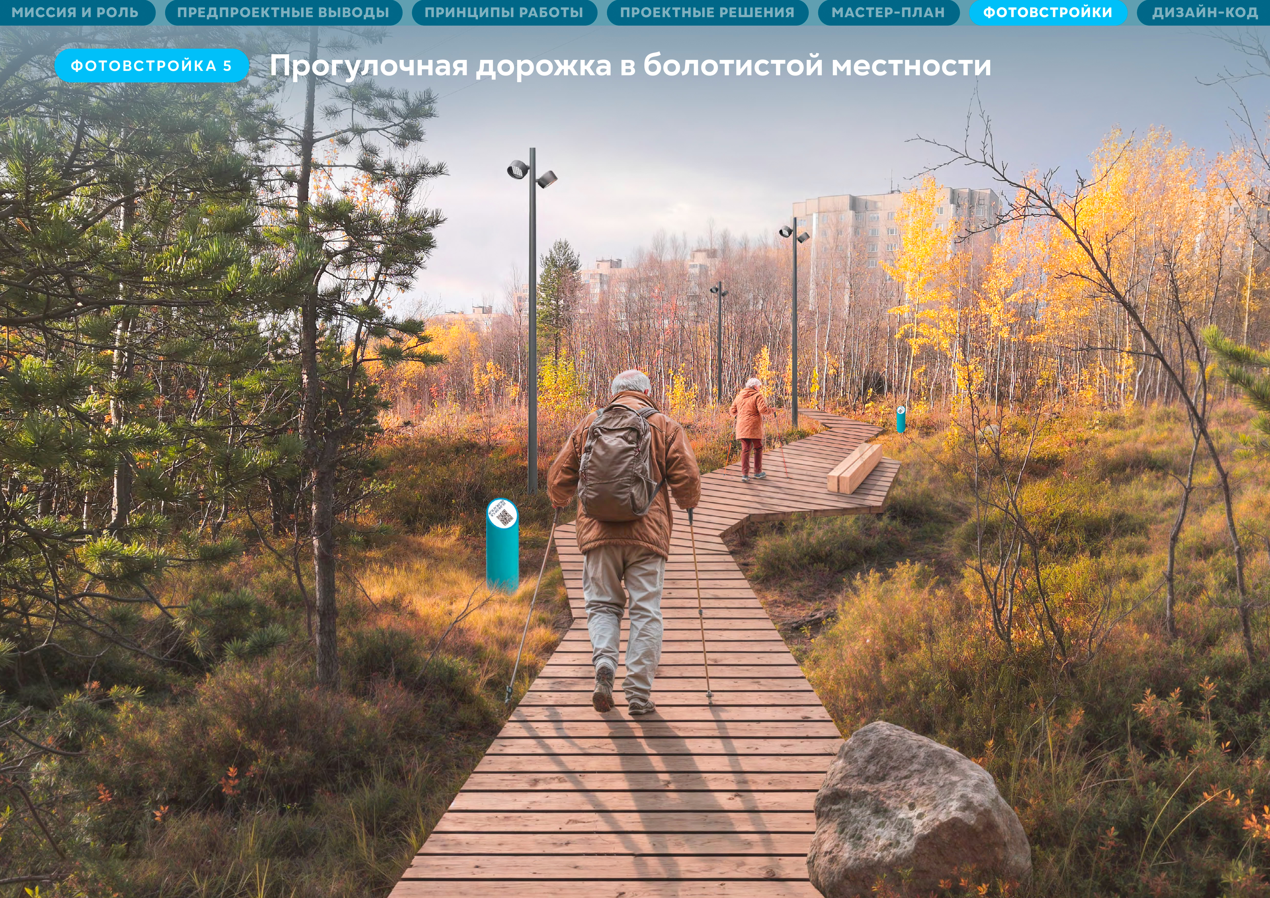 Один из выводов проекта состоит в том, что надо воспринимать тропу как новую типологию пешеходно-рекреационного пространства. Это объект,который содержит элементы придомового сквера и центрального парка,природные территории и участки бульвара. И все эти элементы, как узлы, нанизаны на пешеходный веломаршрут, соединяющий районы.