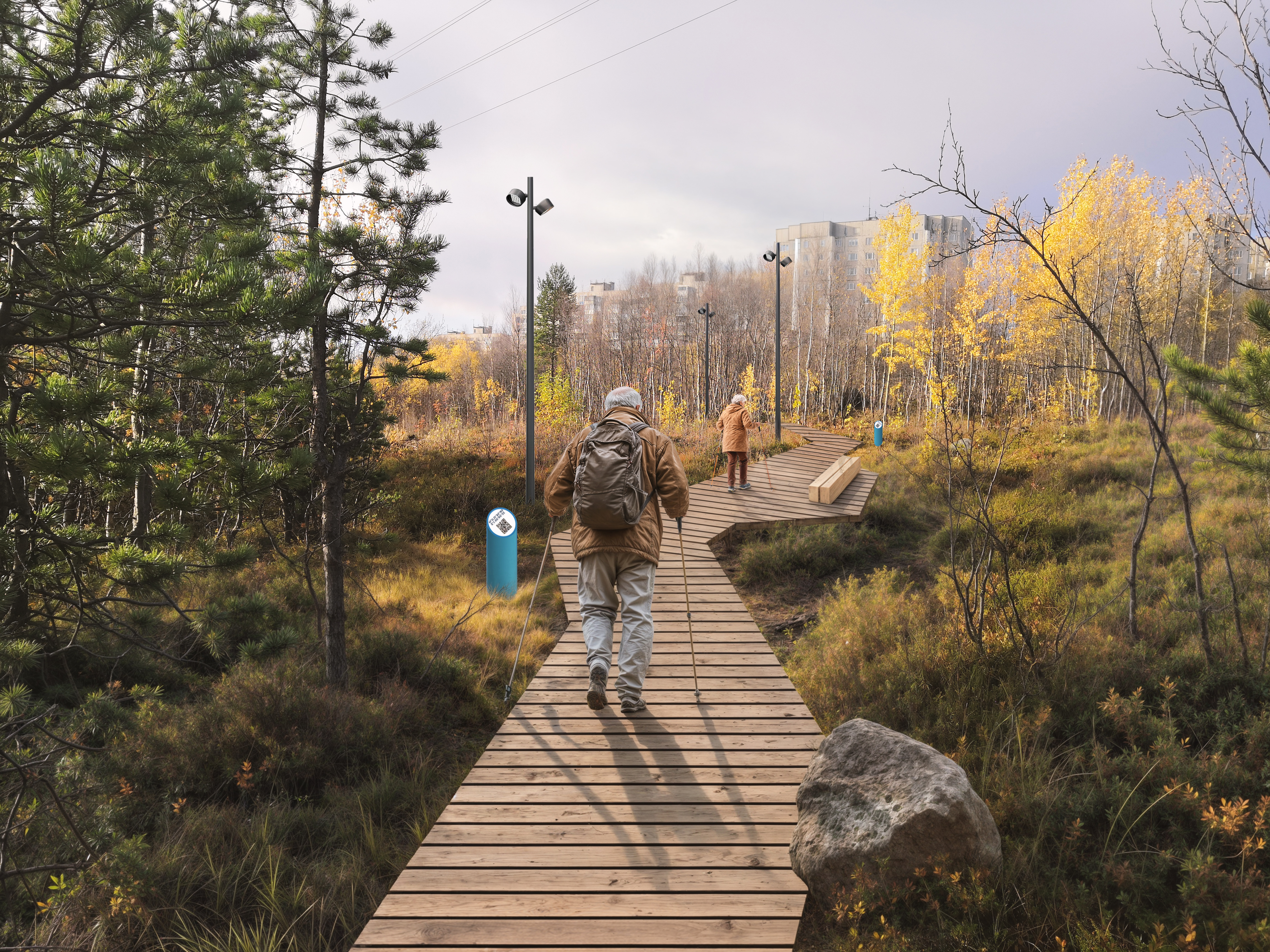- слой утилитарной инфраструктуры — детские, спортивные и собачьи площадки: чтобы по тропе начали много ходить, когда такого паттерна поведения в городе нет, нужны точки притяжения;