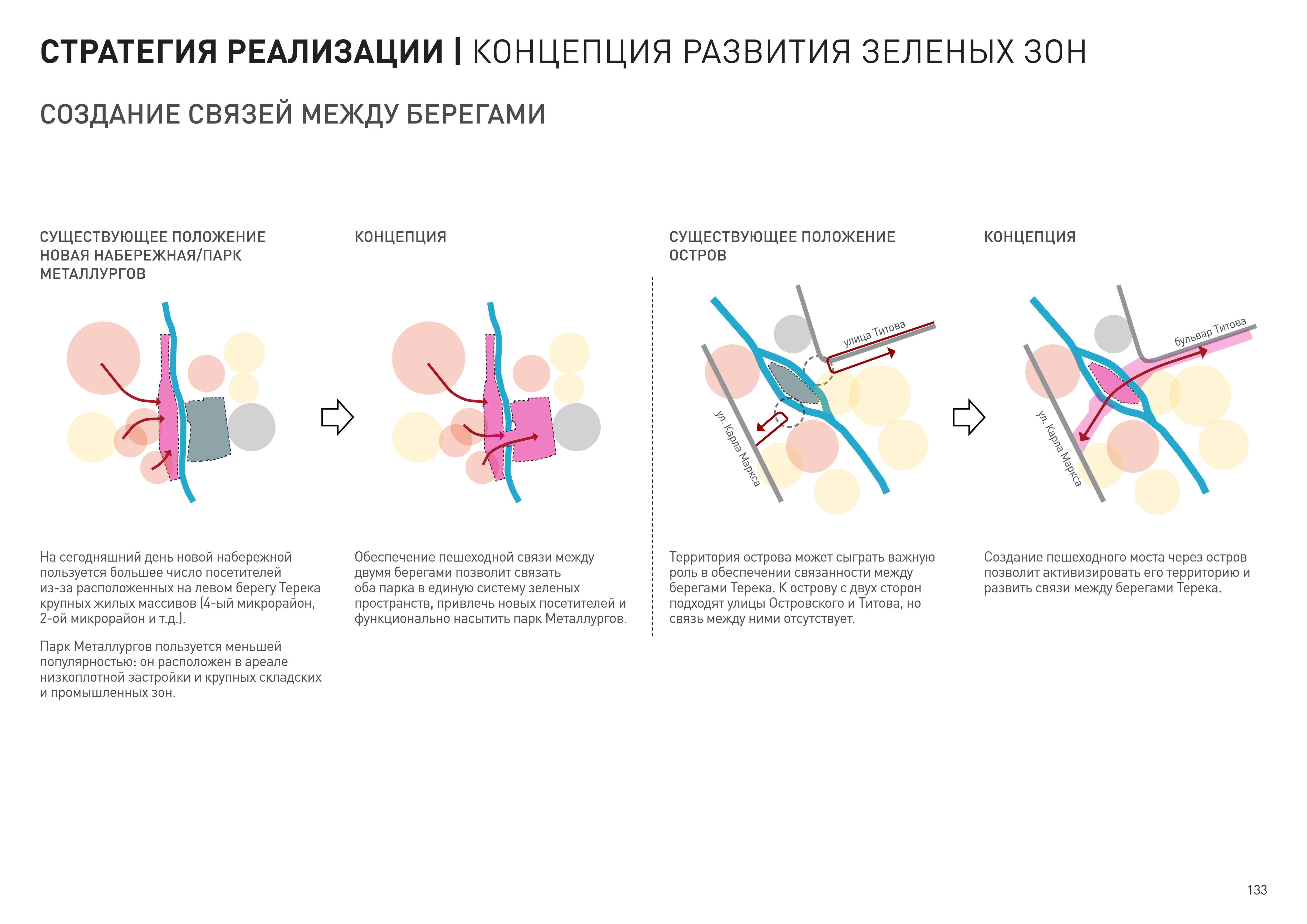 Набережные реки Терек формируют главное рекреационное пространство Владикавказа. Задачей проекта было создание многофункционального, адаптированного для всех групп населения, комфортного каркаса общественных пространств.