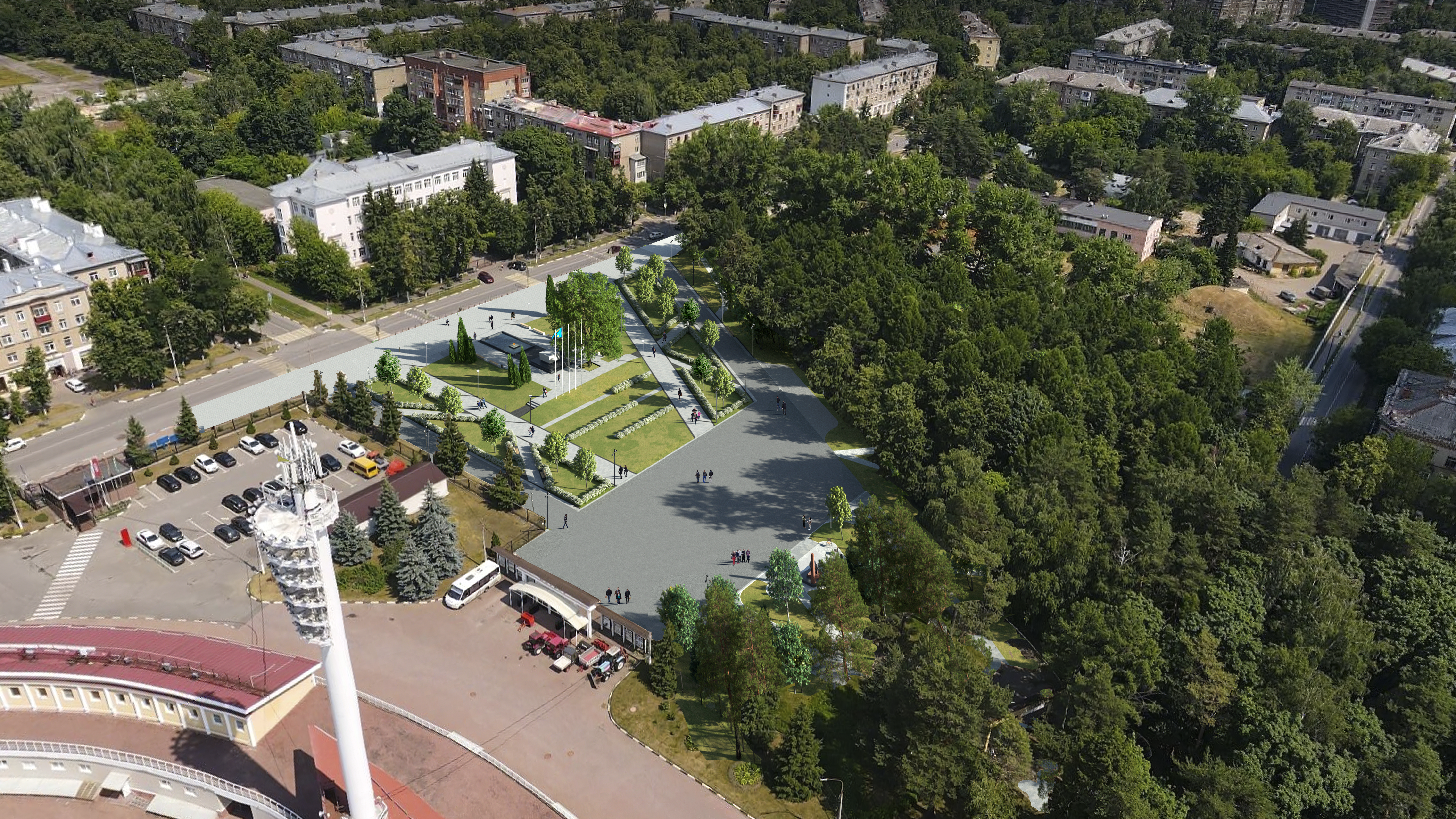 Рассматриваемая территория расположена в центре Жуковского и является своеобразным шарниром между ортогональной сеткой жилых кварталов и обширной природной зоной парка. Центральная часть территории —мемориальная площадь — была открыта во второй половине 1960-х годов и представляла собой лаконичную композицию, состоящую из чаши фонтана с Вечным огнем, мемориального куба и раскидистого дуба, ставшего вертикальной доминантой. Со временем планировка площади усложнилась, ановые скульптуры и облицовка красным гранитом привели к утрате первоначального авторского решения.