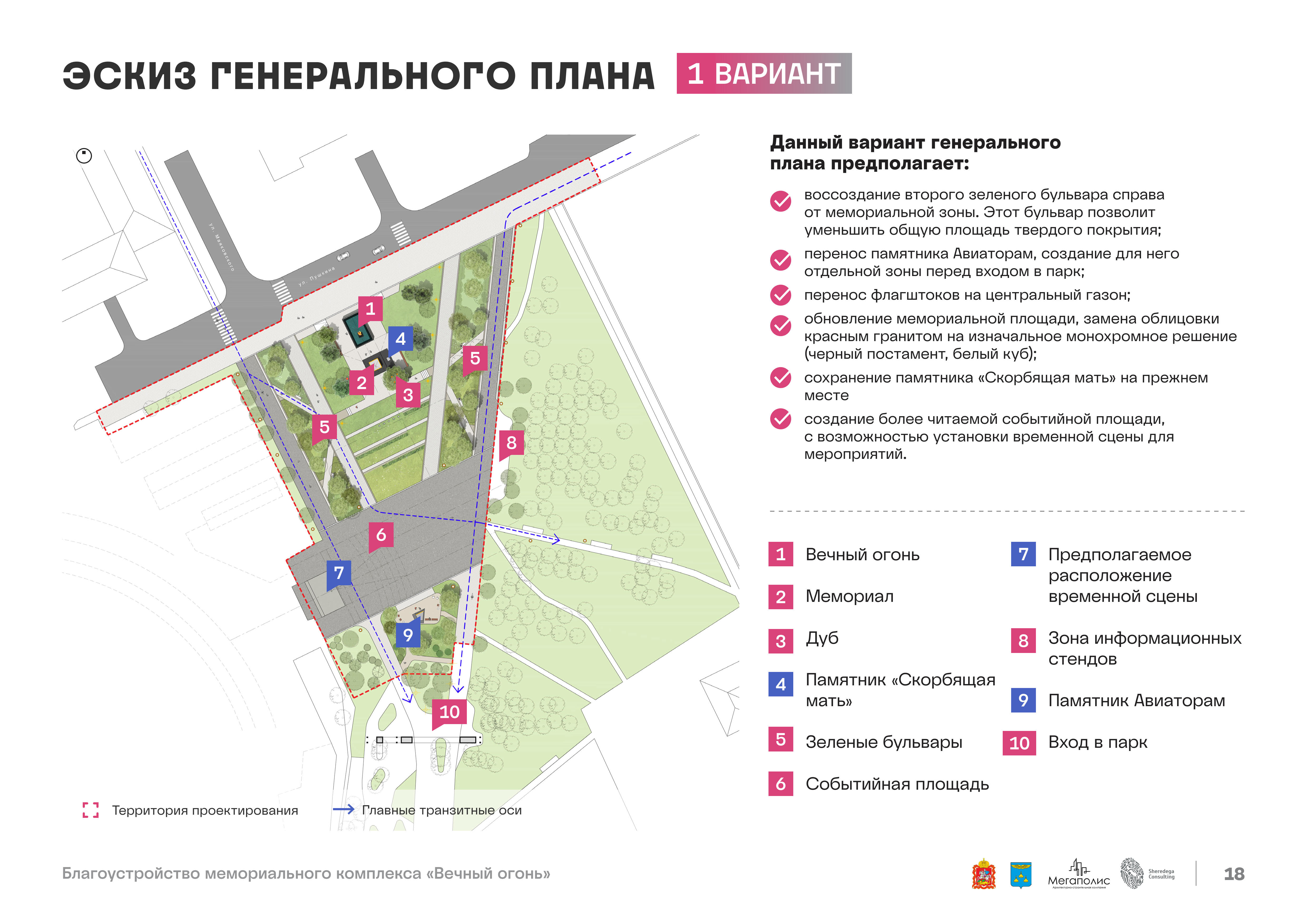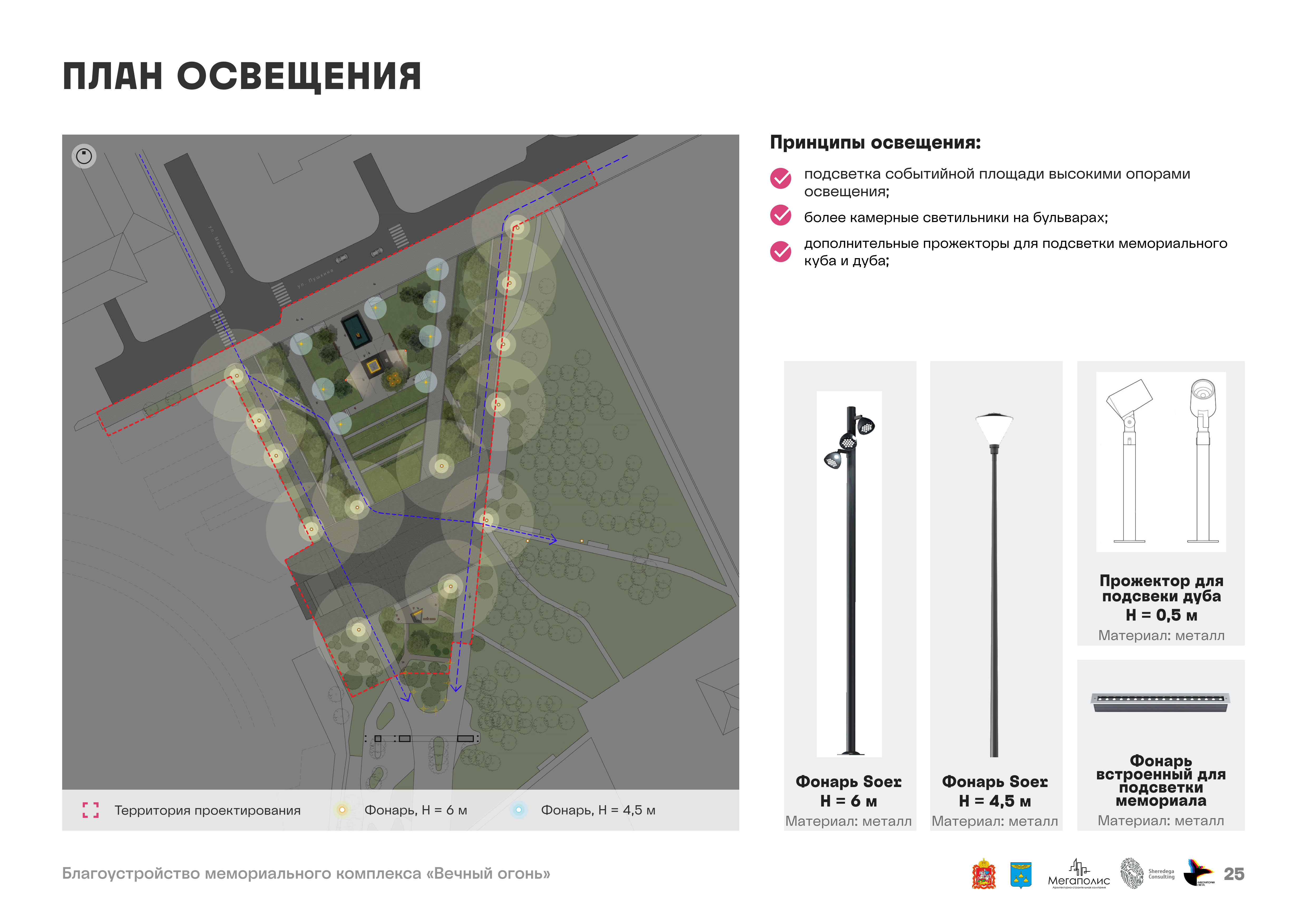 - обновить вечернее освещение и предложить уникальную подсветку мемориальной зоны.