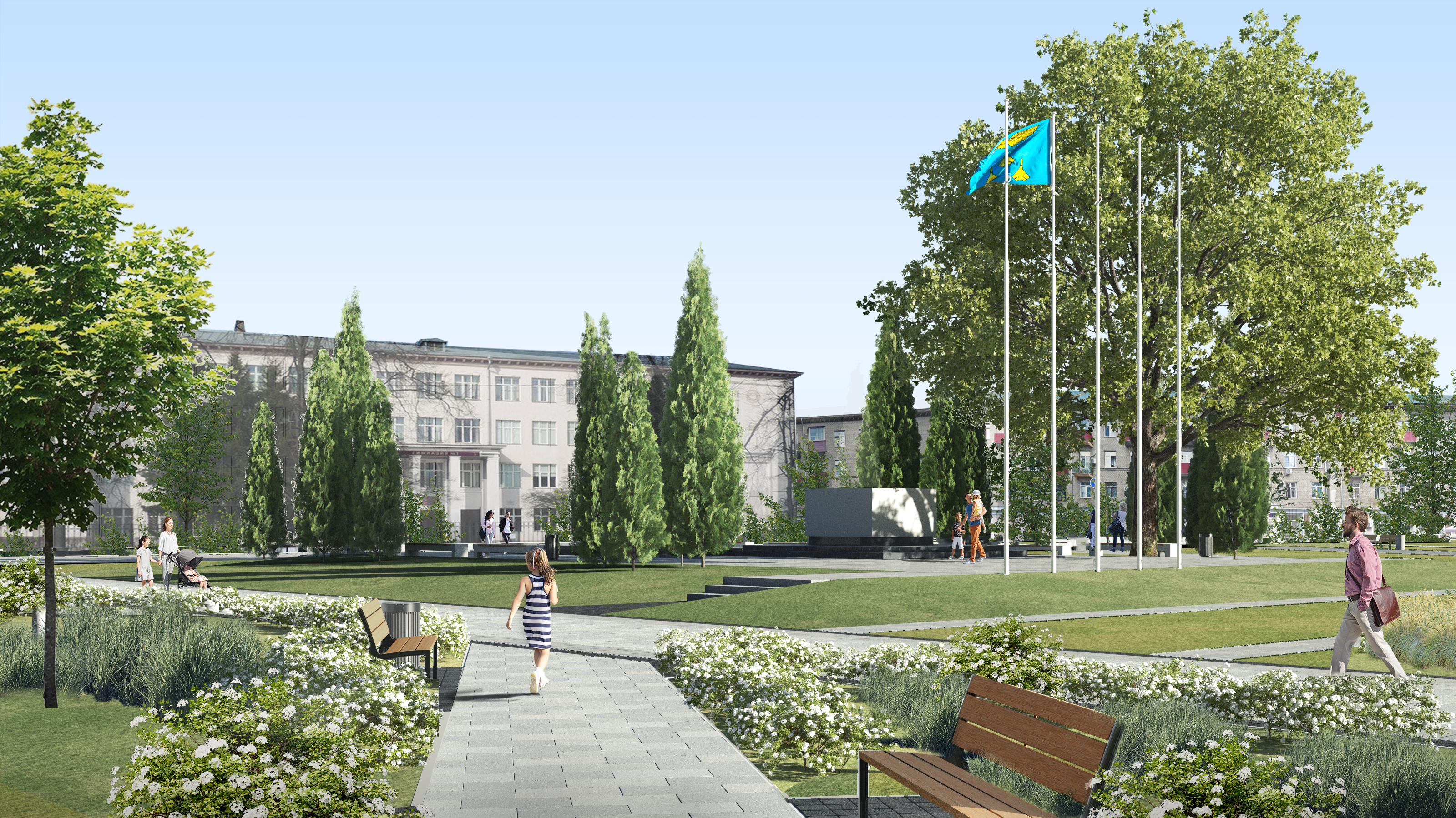 - вернуть скверу первоначальный облик (возвращение к монохромному решению мемориального ансамбля, перенос памятника авиаторам и создание для него отдельной площадки в южной части территории);